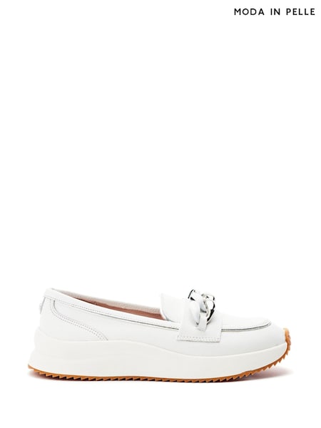 Moda in Pelle White Sorrento Leather Hybrid Shoes With Snaffle Trim