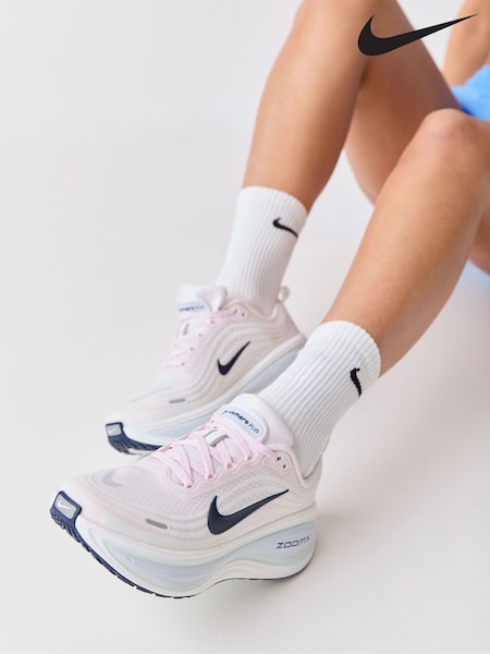 Nike Pearl Pink Navy Vomero Plus Road Running Trainers