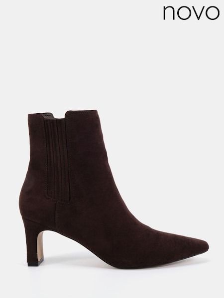 Novo Brown Wide Fit Kara Low Slim Block Heel Sqaure Point Chelsea Ankle Boots