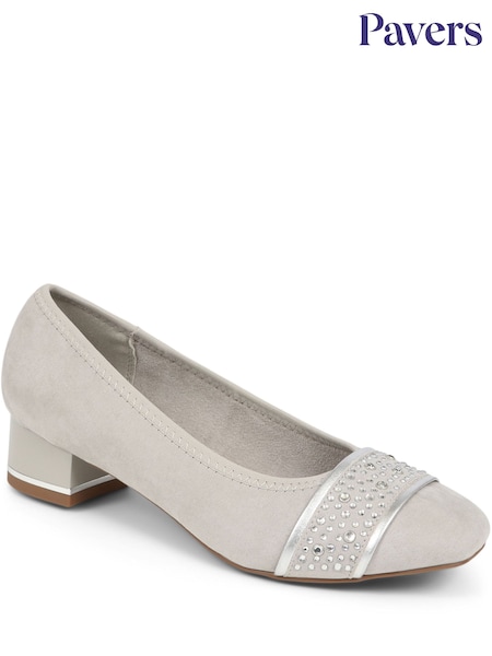 Pavers Light Grey Block Heeled Court Shoes