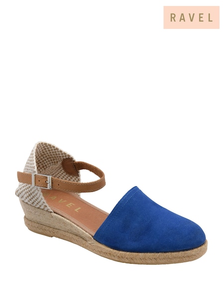 Ravel Blue Ankle Strap Wedge Espadrilles