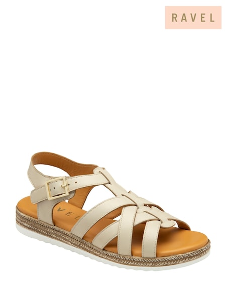 Ravel Cream Strappy Leather Low Wedge Sandals