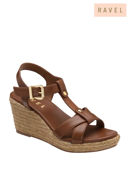 Ravel Brown Leather Wedge Sandals