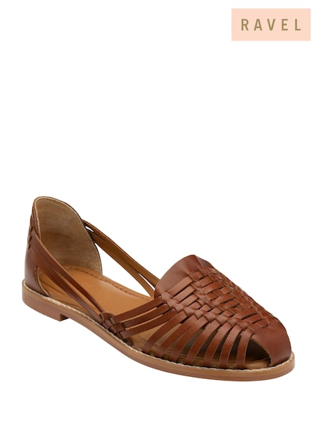 Ravel Brown Interlace Closed Toe Sandalised Leather Shoes