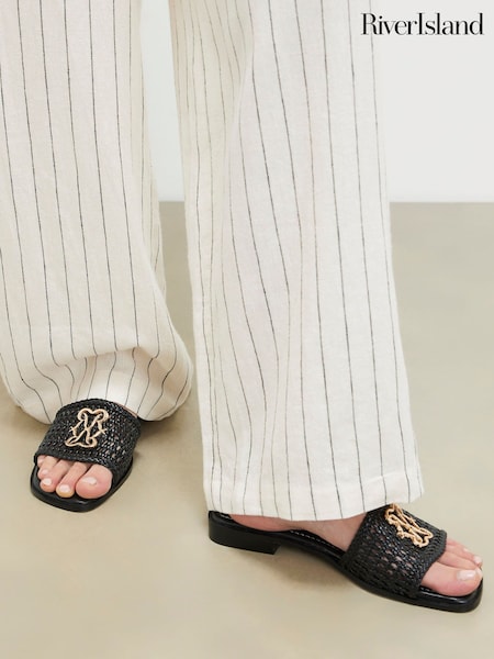 River Island Black Weave Two Part Ring Buckle Flatform Sandals