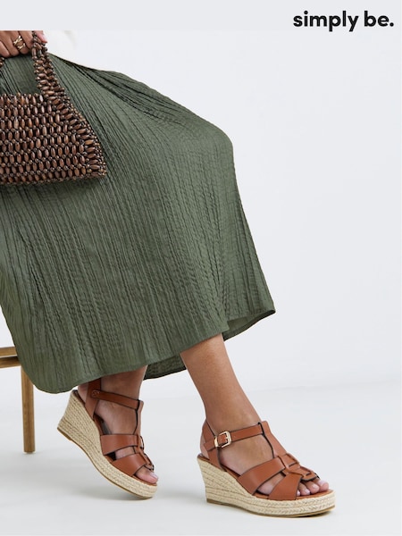 Simply Be Nude Wide Fit Woven Front Espadrille Wedge Sandals