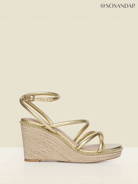 Sosandar Gold Leather Strappy Wedge Espadrilles