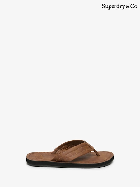 Superdry Tan Brown Faux Leather Braided Flip Flops