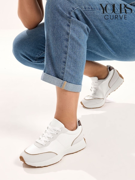 Yours Curve White Wide Fit Faux Leather Runner Trainers