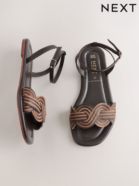 Tan Brown Standard/Wide Fit Woven Flat Sandals
