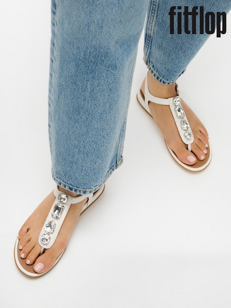 FitFlop White Gracie Ultra-Jewel Leather T-Bar Sandals