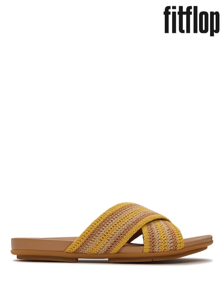 FitFlop Yellow Gracie Stripe-Webbing Cross Slides