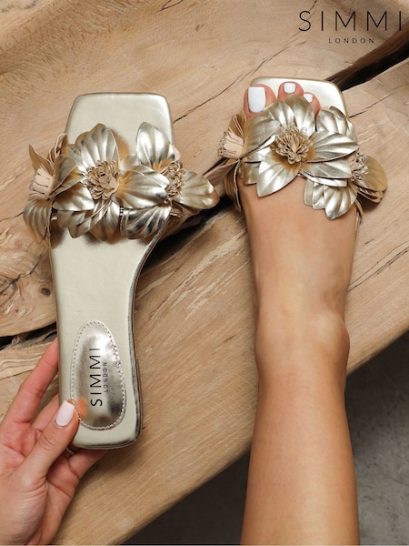Simmi London Gold Gilly Flower Detail Slip On Flat Sandals