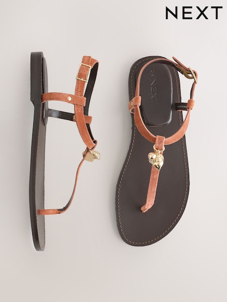 Tan Brown Leather Standard/Wide Fit Stitched Slingback Sandals