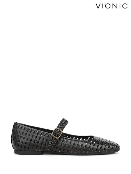 Vionic Black Alameda Woven Arch Support Mary Janes Shoes