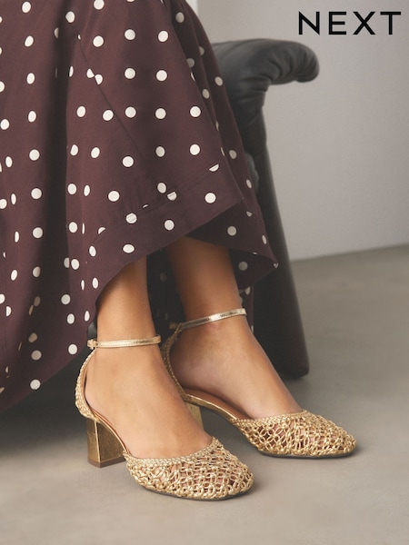 Friends Like These Gold Glitter Standard Fit Pointed Toe Slingback Mid Block Heel Court Shoes