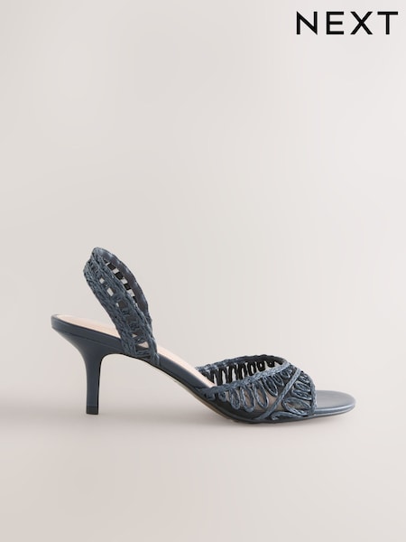 Jones Bootmaker Navy Wide Fit Natural Rosanna Slingback Wedges