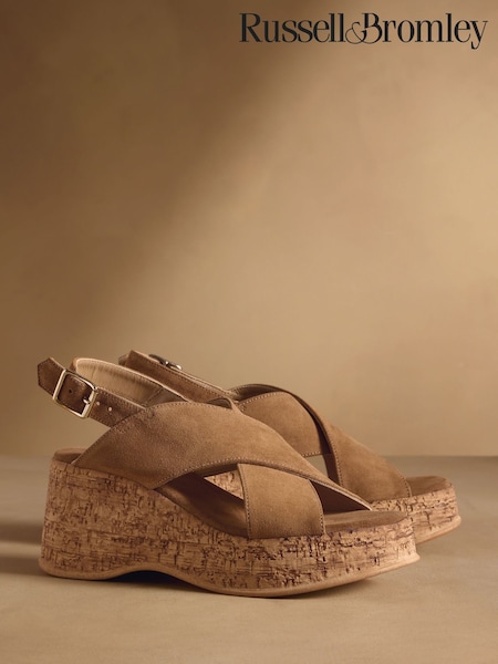 Russell & Bromley Tan Brown Suede Brooke Wedge Sandals