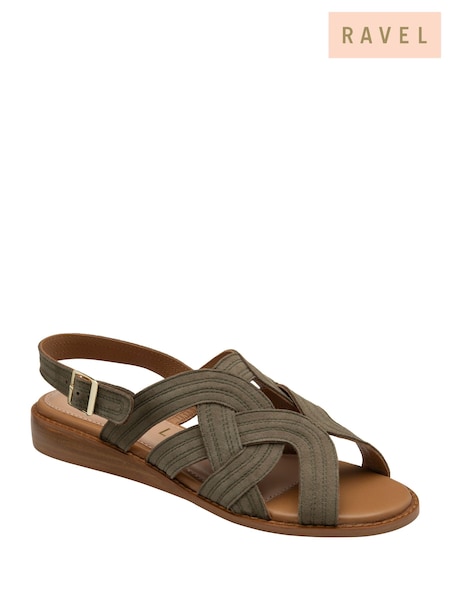 Ravel Green Leather Flat Sandals