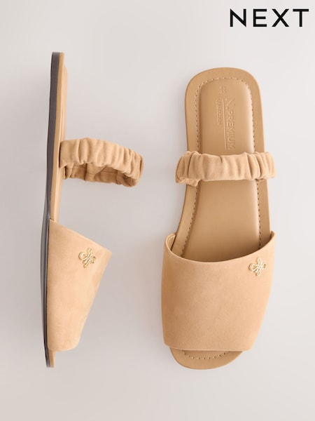 Dune London Natural Standard Fit Leather Landies Cross Strap Comfort Flat Sandals