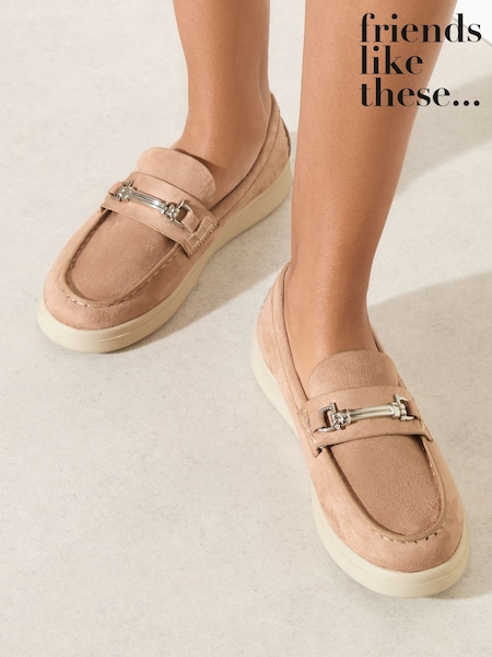 Friends Like These Nude Faux Suede Snaffle Detail Comfort Slip On Casual Loafer Shoes