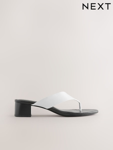 White Forever Comfort® Leather Toe Post Block Heels