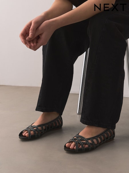 Black Extra Wide Fit Forever Comfort® Peeptoe Flat Shoes