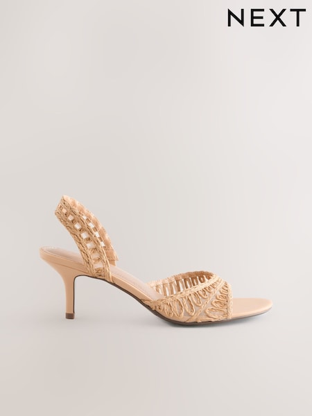 Neutral Raffia Peep Toe Heeled Sandals