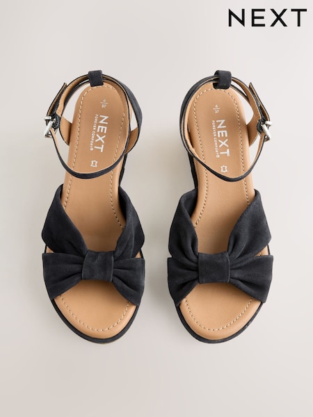 Navy Forever Comfort® Leather Low Cork Wedges