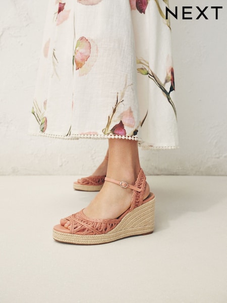 Rose Pink Forever Comfort® Peeptoe Raffia Wedges