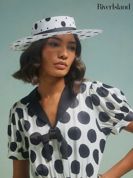 River Island Brown Edwina Oversized Embroidered Boater Hat
