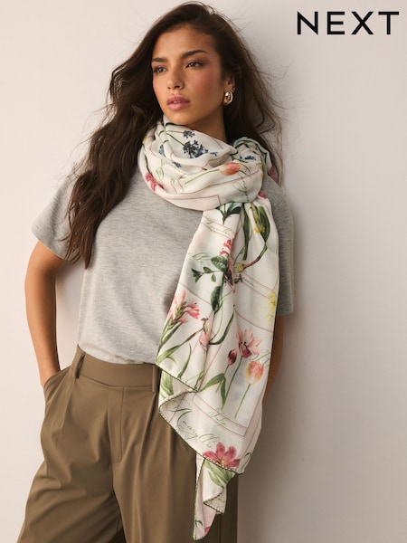 Vintage Floral Picot Edge Detail Lightweight Scarf