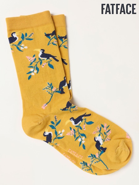 FatFace Mustard Yellow Bee 5 Pairs of Trainer Socks
