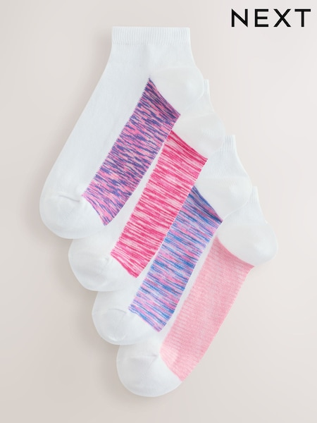 White / Pink Spacedye Footbed Trainer Socks 4 Pack