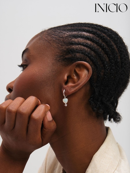 Inicio Sterling Silver Plated Opal Heart Charm Earrings