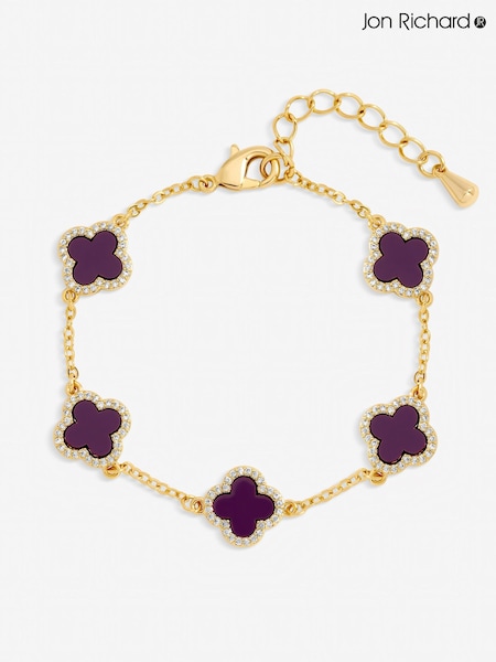 Jon Richard Jet Black Mother of Pearl Polished Clover Bracelet