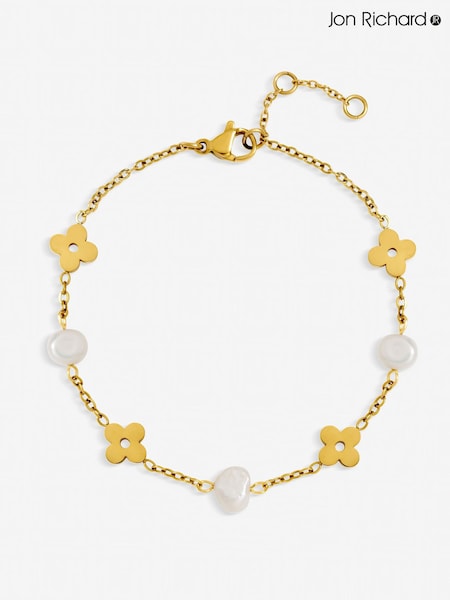 Jon Richard Gold Tone Waterproof Pearl and Floral Station Bracelet