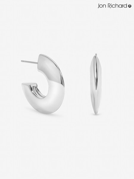 Jon Richard Silver Plated Stainless Steel Waterproof Small Flat Surface Hoop Earrings
