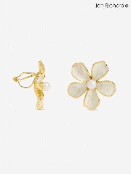 Jon Richard Cream Gold Tone Enamel Flower Clip Earrings
