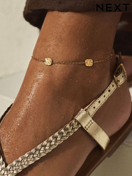 Gold Tone Waterproof Stainless Steel Hammered Disc Anklet