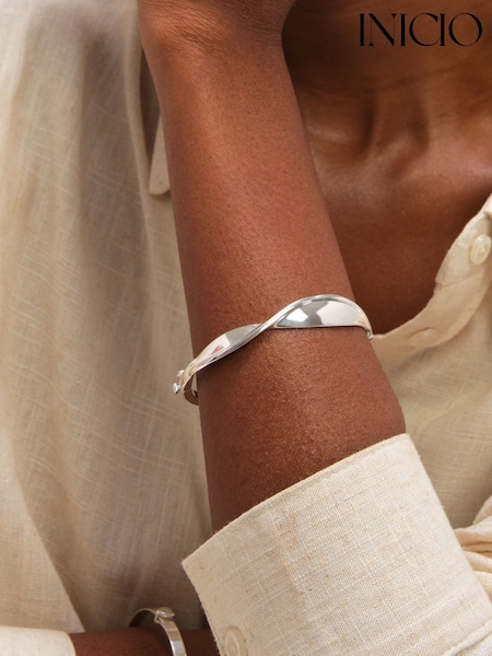 Inicio Silver Tone Polished Wave Bangle - Gift Pouch