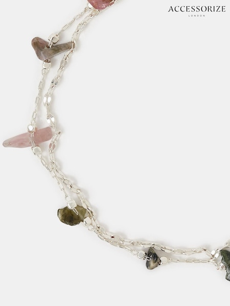 Accessorize Silver Tone Semi Precious Stone Layered Bracelet