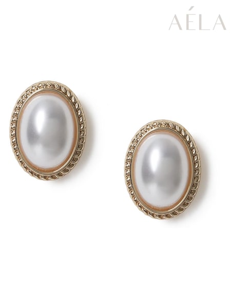 Aela Gold Tone Pearl Stud Earrings