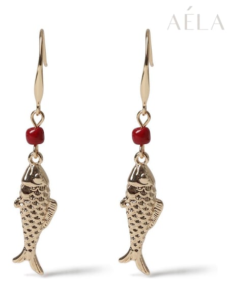Aela Gold Tone Fish Drop Earrings