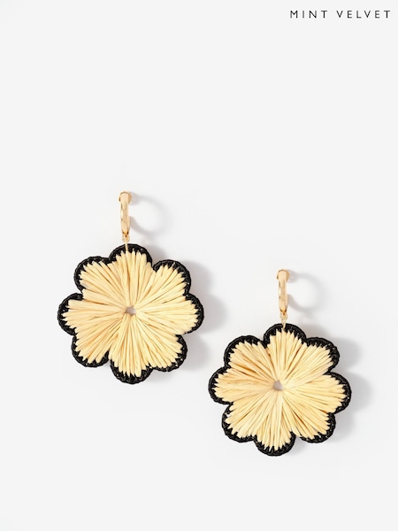 Mint Velvet Natural Raffia Flower Drop Earrings