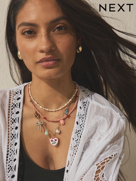 Pink Pretty Charm/Pearl 3 Layer Necklace