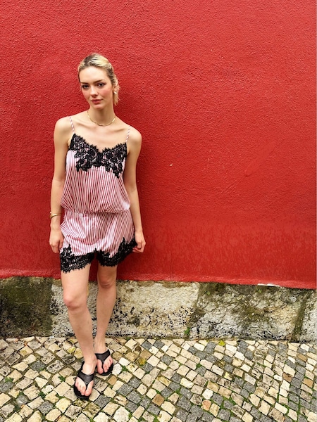 Amy Lynn Pink Palma Satin Lace Playsuit