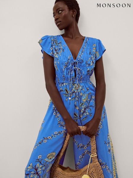Monsoon Blue Gloria Floral Culotte Jumpsuit