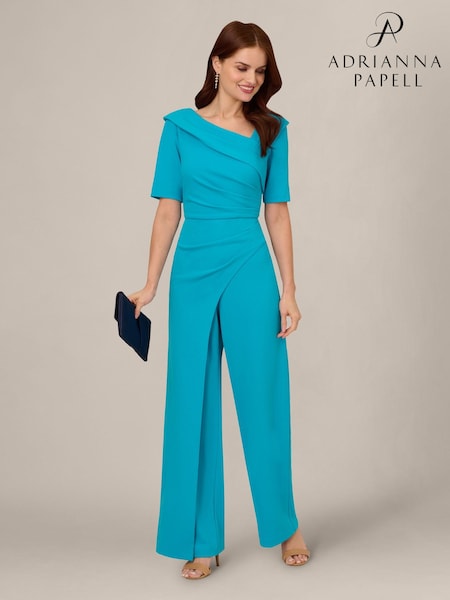 Adrianna Papell Blue Knit Crepe Jumpsuit