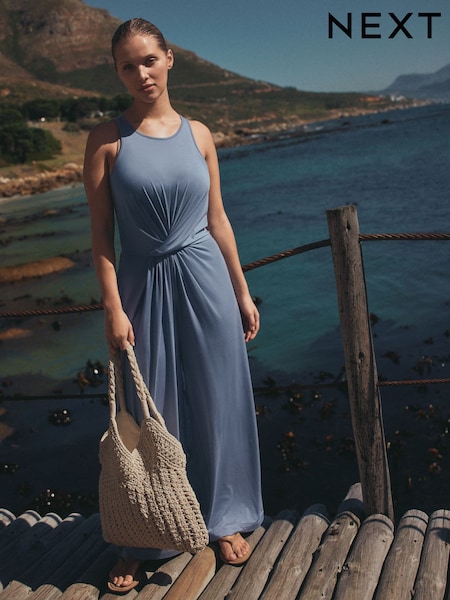 Blue/Navy Twist Waist Jersey Jumpsuit